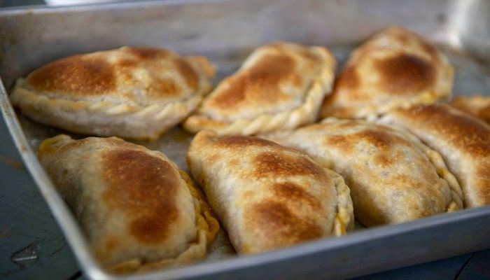 Using olive oil instead of butter in the dough is a great alternative to cut back on the fat while keeping the same flavor. Baking your empanadas instead of deep-frying in oil significantly takes out a lot of unnecessary and unhealthy saturated fat from your diet.
