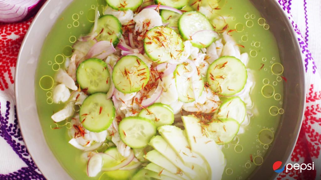 Summer is in full swing, and so are bold memory-making gatherings! As you drink an ice-cold Pepsi you can’t help but think excitedly about all the upcoming get-togethers with friends and family: being splashed by primos while hanging by the pool and munching on delicious snacks, backyard lunches with endless sobremesas, and dinners where everyone is helping to cook while jamming to Tia’s playlist. It also means thinking about what to prepare to eat for those special moments. One thing is for sure—it has to be something that is fresh and tasty. Hailing all the way from Sinaloa, Mexico, Aguachile Verde is the ideal dish to serve during your verano reunions, no matter the occasion. The picor of its Serrano chiles mixed with the lime and cucumber freshness that accompanies each bite of the -oh! so tender- shrimp, el Aguachile Verde siempre es #MejorconPepsi, to complete that moment of summer joy.