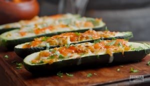 Picture melty mozzarella cheese blanketing tender zucchini halves, their contrasting textures a delightful combination. Each bite bursts with savory goodness, thanks to a flavorful filling of sautéed garlic, onion, and fresh parsley. Crispy breadcrumbs add a touch of texture, while the aroma of toasted cheese fills the air. This simple yet satisfying dish is perfect for a weeknight meal or a casual get-together. The perfect recipe to go along with the “Chayote & Blistered Tomato Salad” while cheering for your favorite NCAA Women’s Basketball team.