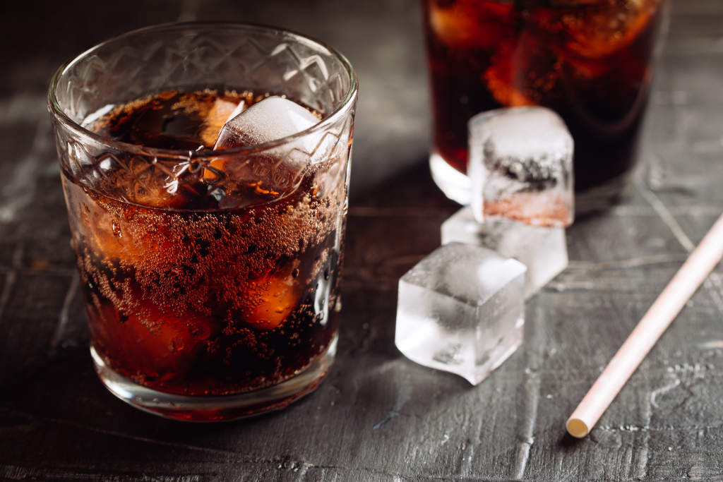 Rum and cola with ice. Cold cocktails for summer parties. Alcohol.